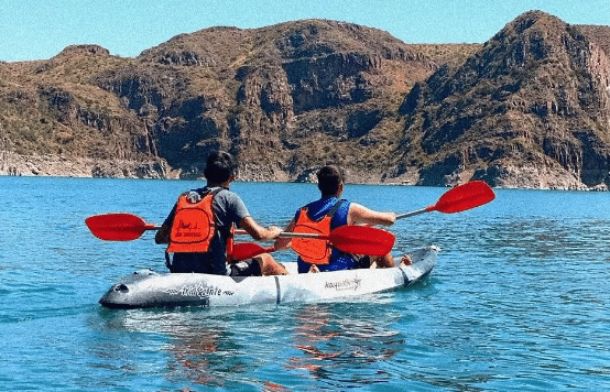 Paseo remando en embarcaciones livianas y estables sobre aguas tranquilas del lago, ideal para disfrutar el paisaje a tu ritmo.