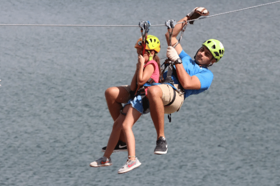 Deslizamiento por cables tensados entre plataformas o instalados sobre el paisaje serrano. Pura adrenalina, aventura rápida y panorama abierto del Valle y el lago.